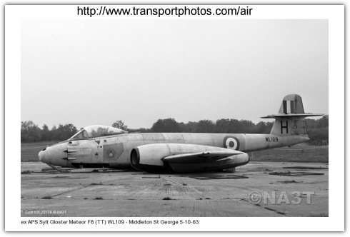 | WL109 | Gloster Meteor F8 | d/d 03/09/1953, s.o.c. 17/09/1962, perished Middleton St George |  | |