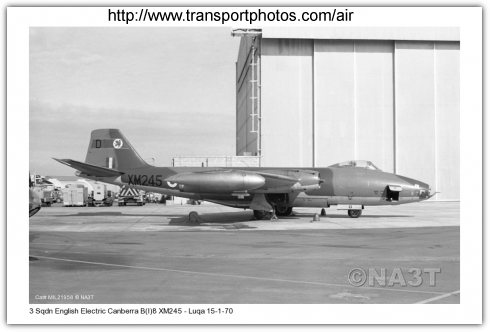 | XM245 | EE Canberra B(I)8 | d/d 12/09/1958, s.o.c. 06/06/1972, destroyed Nordhorn Ranges, West Germany |  |  |