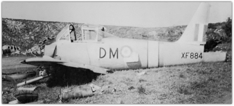 | 24/09/1959 | XF884 | DM | Provost T1 | RAFC | Written off when it ground looped at Barkeston Heath, Lincs after the undercarriage collapsed on landing. The pilot escaped safely |
