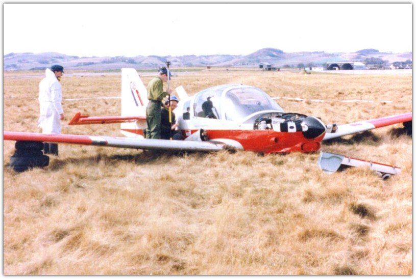 | 05/03/1999 | XX666 | 08 | Bulldog T1 | 12 AEF | The pilot was practising engine failures after take off from Leuchars, Fife. The aircraft turned first to the left and then to the right and then began to decent rapidly. It then struck the grass heavily on the north side of the airfield causing the undercarriage to collapse. Both crew were able to escape from the aircraft unaided and were taken to Dundee hospital. With the impending replacement of the Bulldog it was not repaired and was sent to Newton for store. It was eventually sold to a businessman in Florida for spares for his Bulldog fleet. The pilot was also involved in the incident involving XX665 on 20/03/1997 |