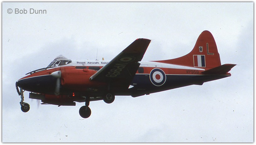 | VP954 | DH Devon C1 | To G-AWRG 25/09/1968, scrapped Leavesden 12/1969 |  | |