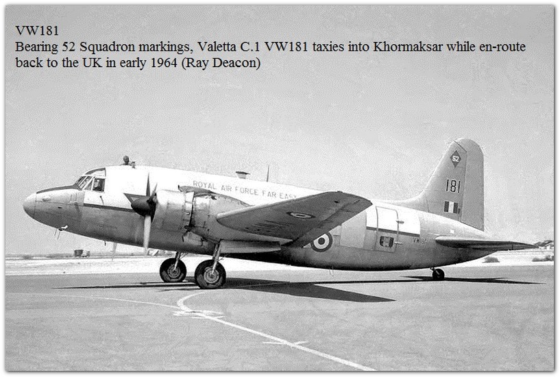 | 342 | VW186 | Vickers Valetta C1 | f/f 20/01/1949, d/d 02/03/1949, s.o.c. 31/07/1958 as CAT 5(C) in Aden |  | |