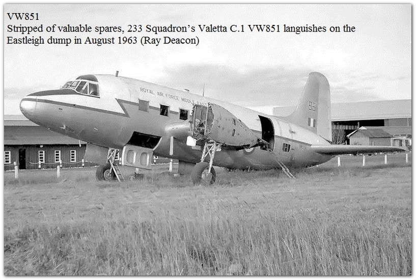 | 357 | VW201 | Vickers Valetta C1 | f/f 15/03/1949, d/d 23/04/1949, sold as scrap 06/10/1958 at No.12 MU Kirkbride |  | |