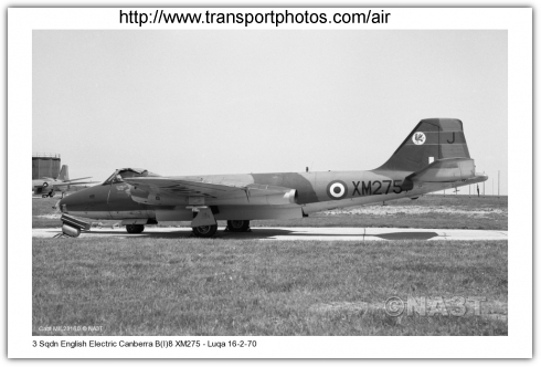 | XM275 | EE Canberra B(I)8 | d/d 13/03/1959, to Wattisham F/S 19/06/1972, perished 1984 |  |  |