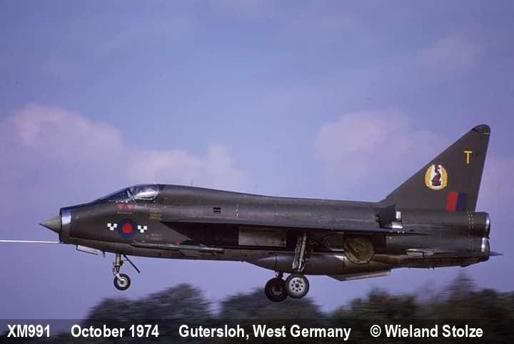 | 95079 | XM991 | EE Lightning T4 | f/f 04/10/1961, d/d 20/09/1962, w/o 03/05/1974, to 8456M, b/u 06/1975 |  |  |