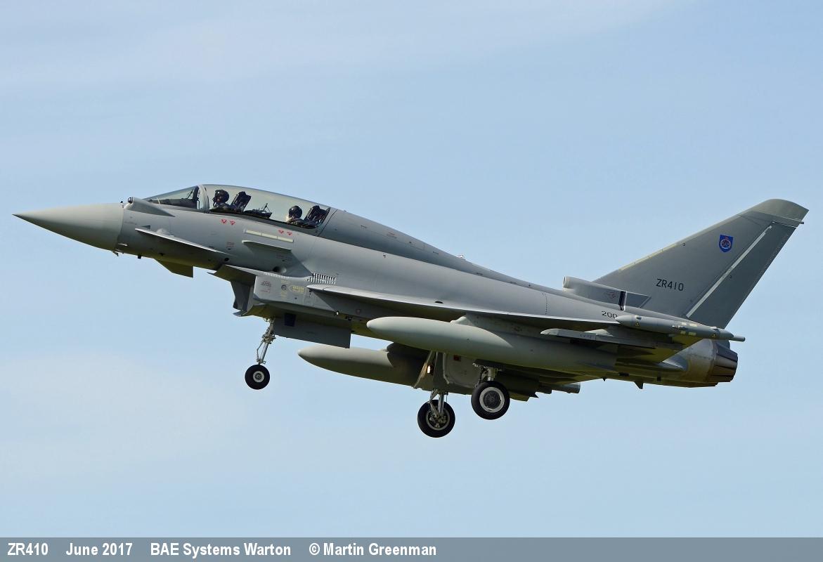 | NT001 | ZR410 | Eurofighter Typhoon T | f/f 25/11/2016, d/d 19/06/2017 to RAFO as 200 |  | |