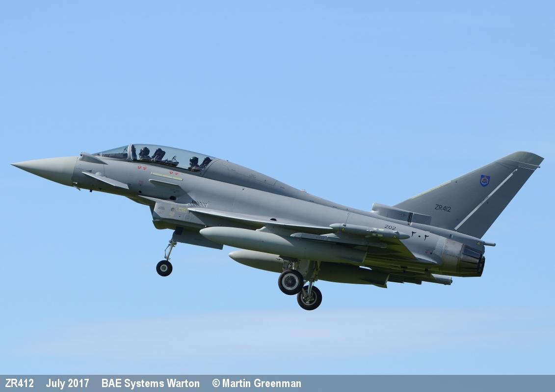 | NT003 | ZR412 | Eurofighter Typhoon T | f/f 07/03/2017, d/d 07/08/2017 to RAFO as 202 |  | |