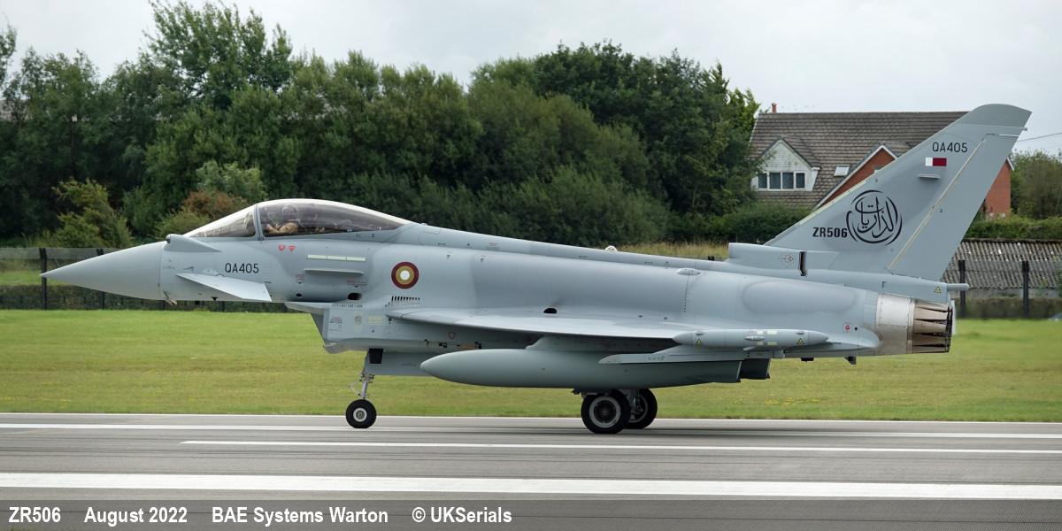 | MS0002 | ZR506 | Eurofighter Typhoon | f/f 12/01/2022, d/d 25/08/2022 to QEAF as QA405 |  | |