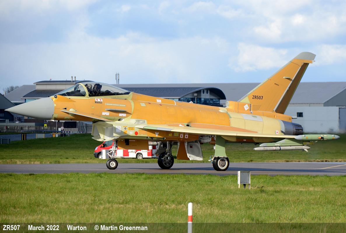 | MS0003 | ZR507 | Eurofighter Typhoon | f/f 31/03/2022, d/d 30/08/2022 to QEAF as QA406 |  | |
