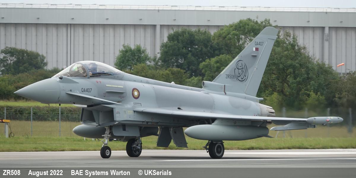 | MS0004 | ZR508 | Eurofighter Typhoon | f/f 09/05/2022, d/d 30/08/2022 to QEAF as QA407 |  | |