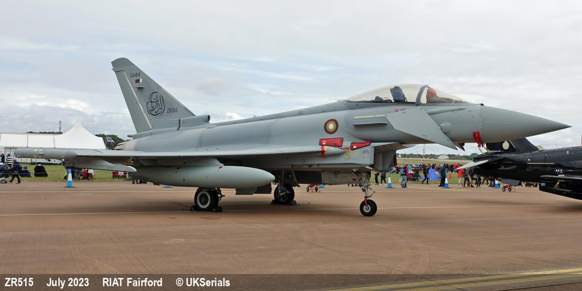 | MS0011 | ZR515 | Eurofighter Typhoon | f/f 25/04/2023, d/d 03/10/2023 to QEAF as QA414 |  | |