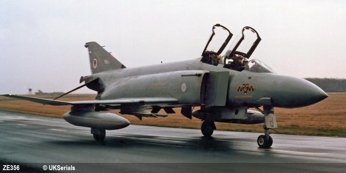 | 2293 | ZE356 | McDD Phantom F-4J | Ex 153850, d/d Wattisham 26/11/1984, to 9060M, scr. Waddington 24/04/2004 |  |  |